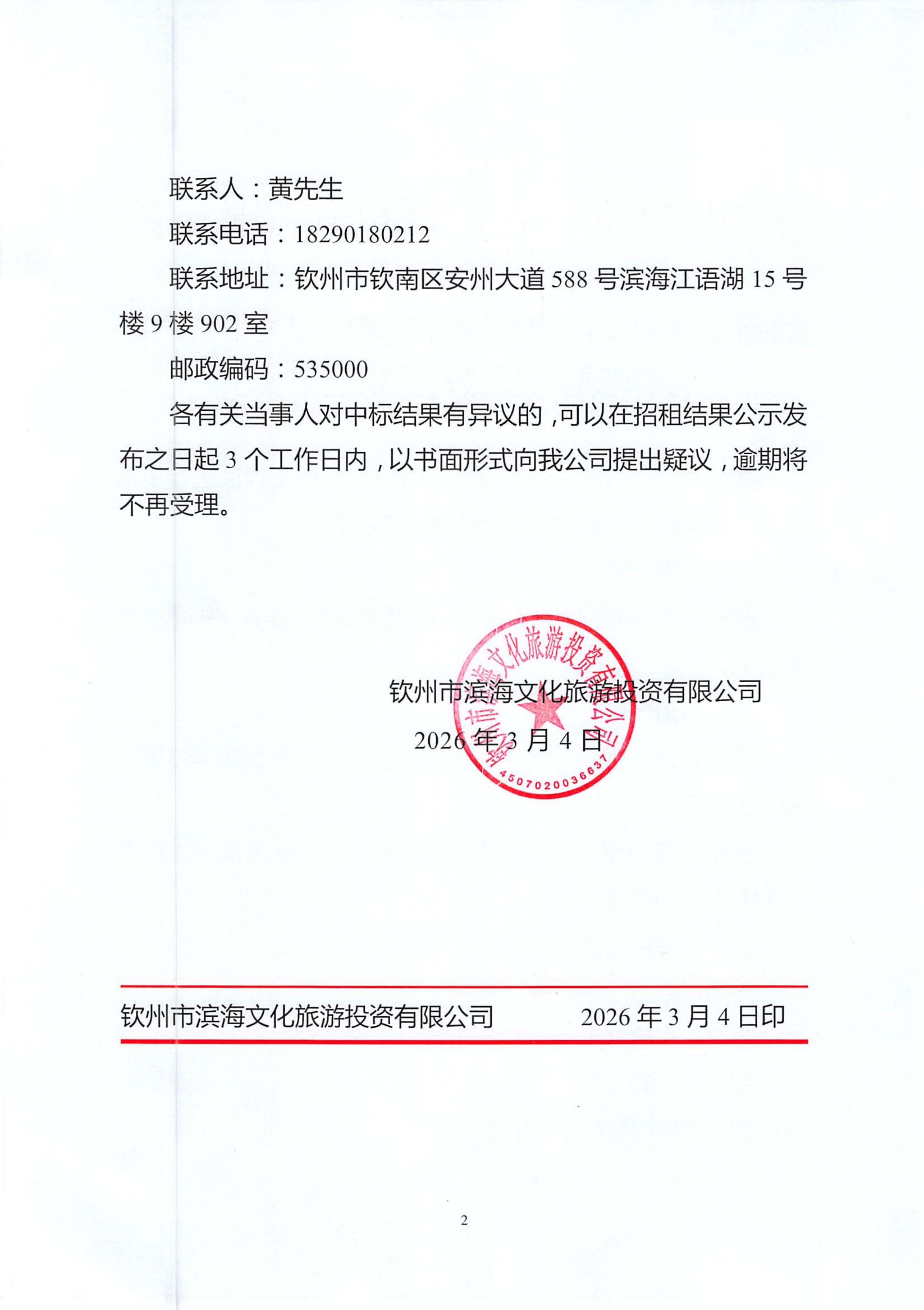 欽州市濱海文化旅游投資有限公司關(guān)于欽州市老街范圍3處房屋公開招租結(jié)果公示